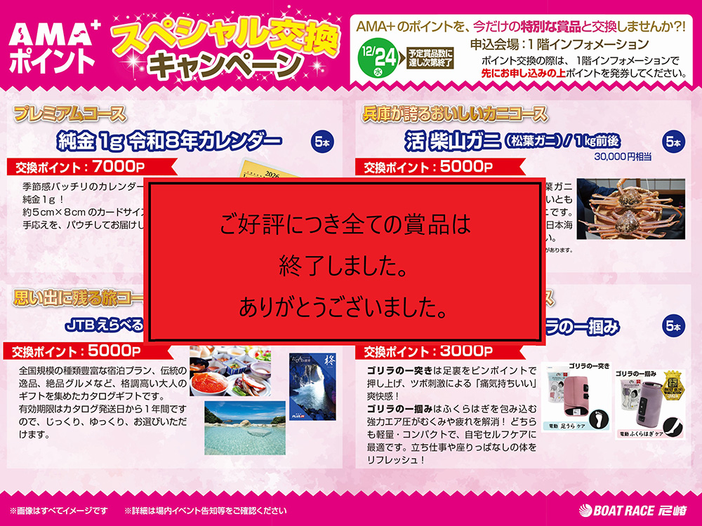 ・当選者への交換場所:ボートレース尼崎 インフォメーションにて交換