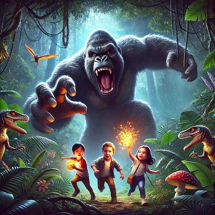 まずい!巨大コングが恐竜の卵を奪いに来た!ショーを観ているキミたちの手で、卵を取り戻してくれ!