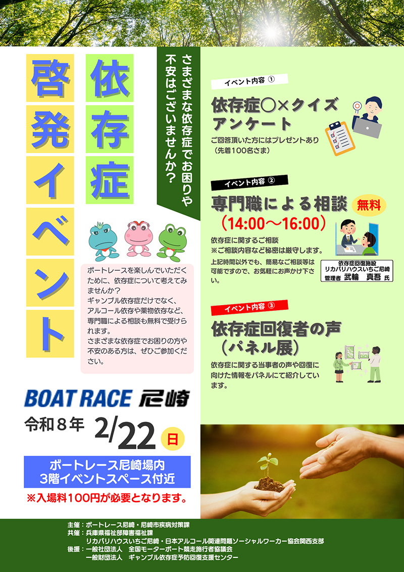 ボートレースを楽しんでいただくために、依存症について考えてみませんか?