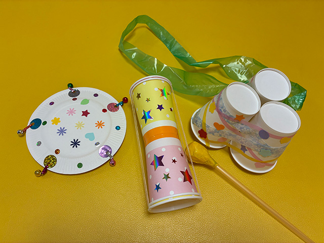 身近にある日常品を組み合わせて、楽器作りの工作を楽しもう♪