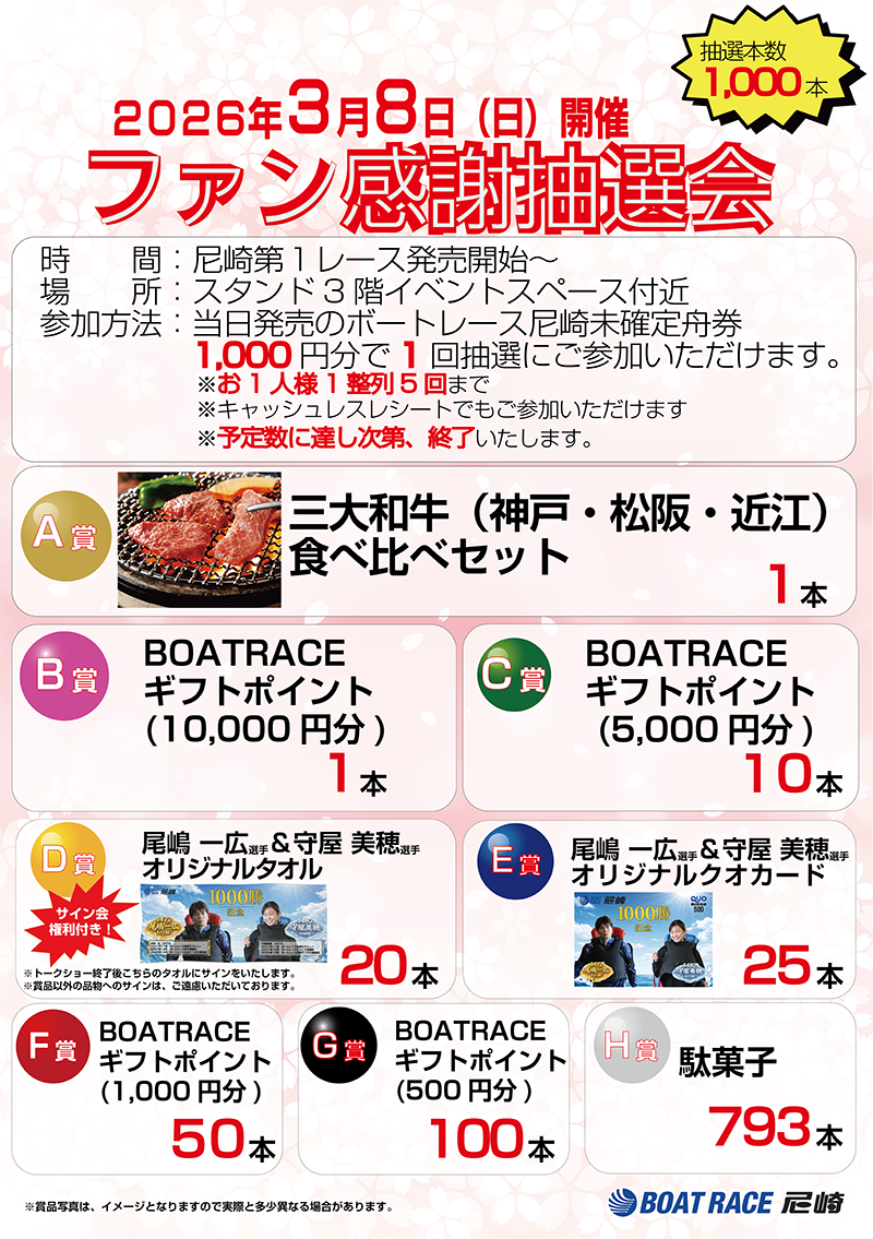尼崎未確定舟券1,000円以上を提示された方(抽選本数1,000本)
