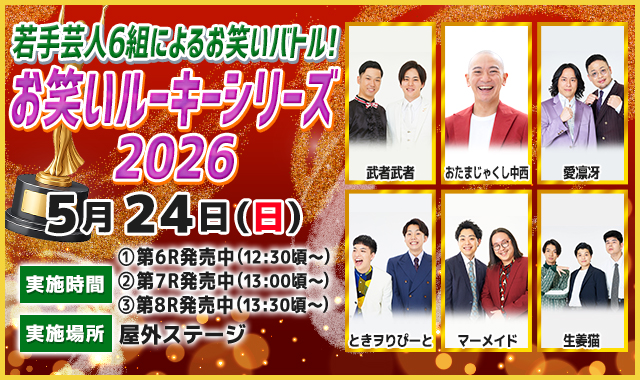 若手芸人6組がBOATRACE尼崎に集結し、観客の投票で王者を決める「お笑いルーキーシリーズ2026」を開催!